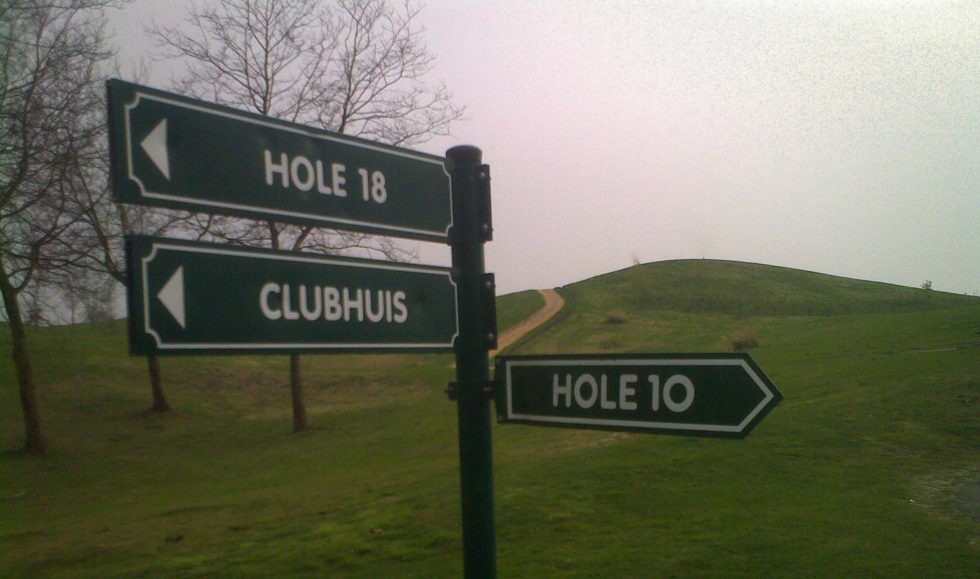 En dan loopt het. In een opwaartse lijn richting hole negen. Bijna zo soepel als de heupen van een volleerd salsadanseres. En dan staat daar het bord. Net voor het hoogtepunt van mijn golfcurve. Linksaf naar het clubhuis. Rechtsaf naar hole tien.
